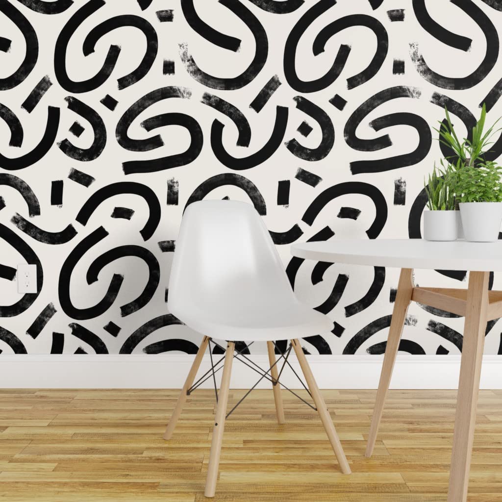 Commercial Grade Wallpaper 27ft X 2ft Black White Abstract Paint Brush Modern Minimalist Traditional Wallpaper By Spoonflower Amazon Com